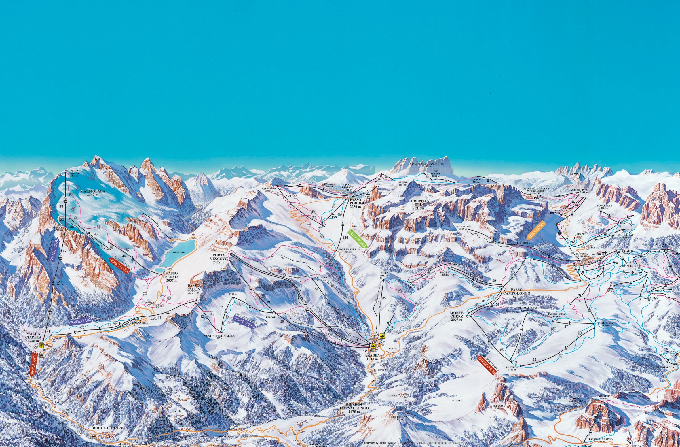 Będąc w Arabbie warto zboczyć trochę z trasy pętli i zdobyć najwyższy szczyt Dolomitów, czyli słynną Marmoladę, wznoszącą się na 3342 m n.p.m. Widoki i emocje płynące ze zjazdu ponad 12 kilometrową trasą z powrotem w doliny są niezapomniane.